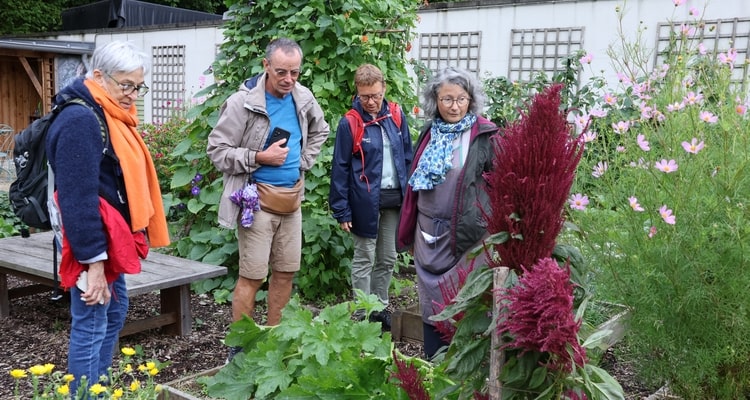 En début d’après midi visite du potager partagé de Champrosay à Draveil. Sous l’impulsion de deux passionnés de jardin, Jean-Paul Collaert président et Michel Mayer vice-président, ce lieu a pris forme il y a trois ans environ. Chacun a sa planche et ne pratique que la culture biologique.