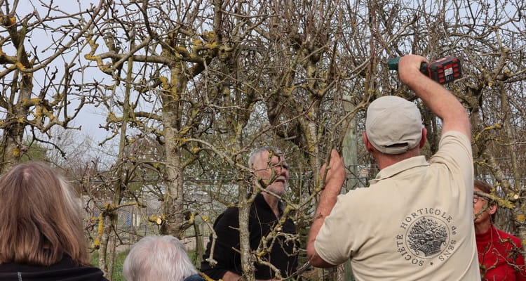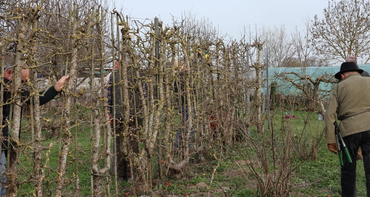 Après avoir procédé à la désinfection des sécateurs, « les Jean-Luc » ont rappelé durant un très bref moment les principes de cette taille pratiquée pendant la période de dormance végétative des arbres.